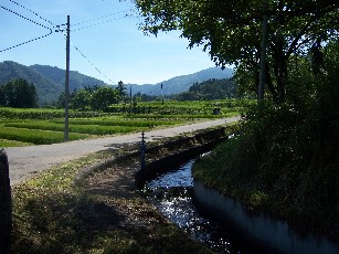 遠野から南東に海の方へ向かえば釜石ですが、小国は釜石からも遠野からもかなり離れた山の中です。釜石から直線距離で40キロメートルほどですが、山道ですからその倍くらいの距離があるでしょう。小国まで走ってみて、彼ら二人が本当に逃げ切って隠れ住もうとしたのだと思いました。下左の動画は川の上流にある堰です。説明版は町の中央を走る道路沿いにあり、そこから川沿いに昇ると堰があり、現在はコンクリートで作られています。昔は川の落差が比較的大きい所のやや上流で川に石を積み、水を溜め、脇に水路を造りました。動画の途中で見えるように、水路には水位を調節する木製の横板を取り付けますが、これは水が過剰なときに余分な水を逃がすためのものです。下右の写真はその堰から引いた水路で、現在も使われています。